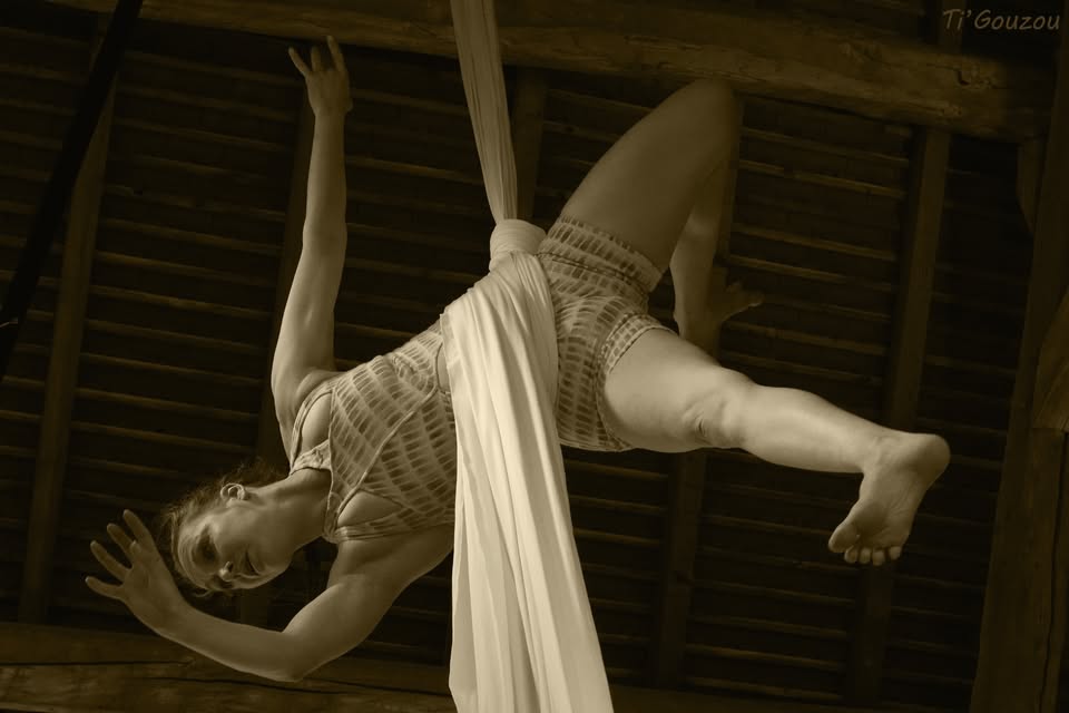 - Découverte et technique des tissu et hamac aériens, au travers de l’apprentissage d’enchaînements mêlant danse et performance.